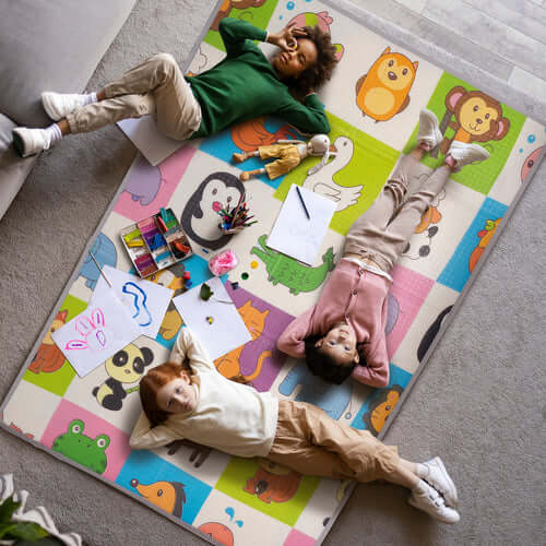 - Extra Cushioning & Soft Texture: Memiliki lapisan empuk yang mampu meredam benturan saat si kecil belajar merangkak atau berjalan. Permukaannya lembut namun tidak licin (anti-slip), menjaga si kecil tetap stabil saat aktif bergerak.
